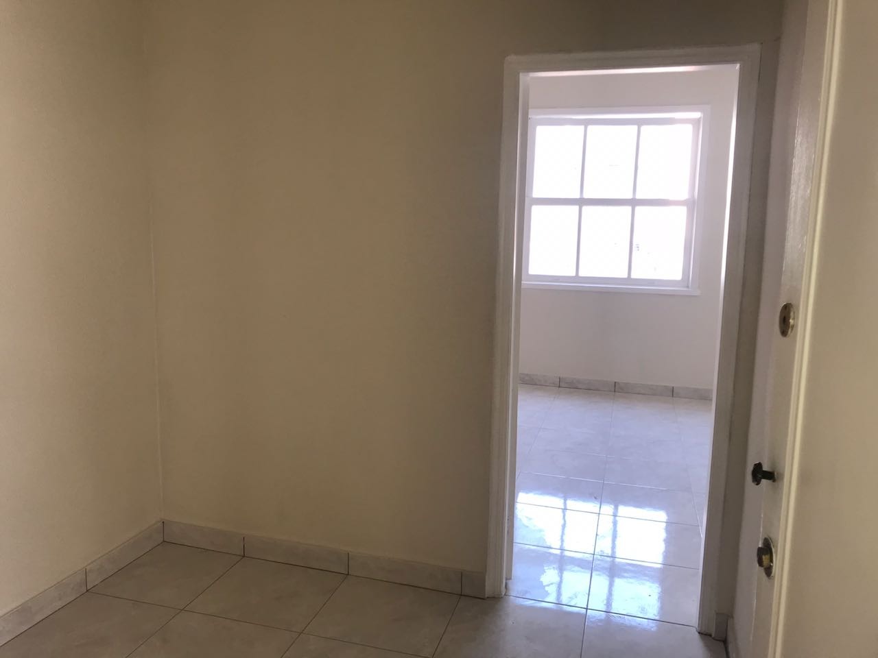 Piso claro em cerâmica.